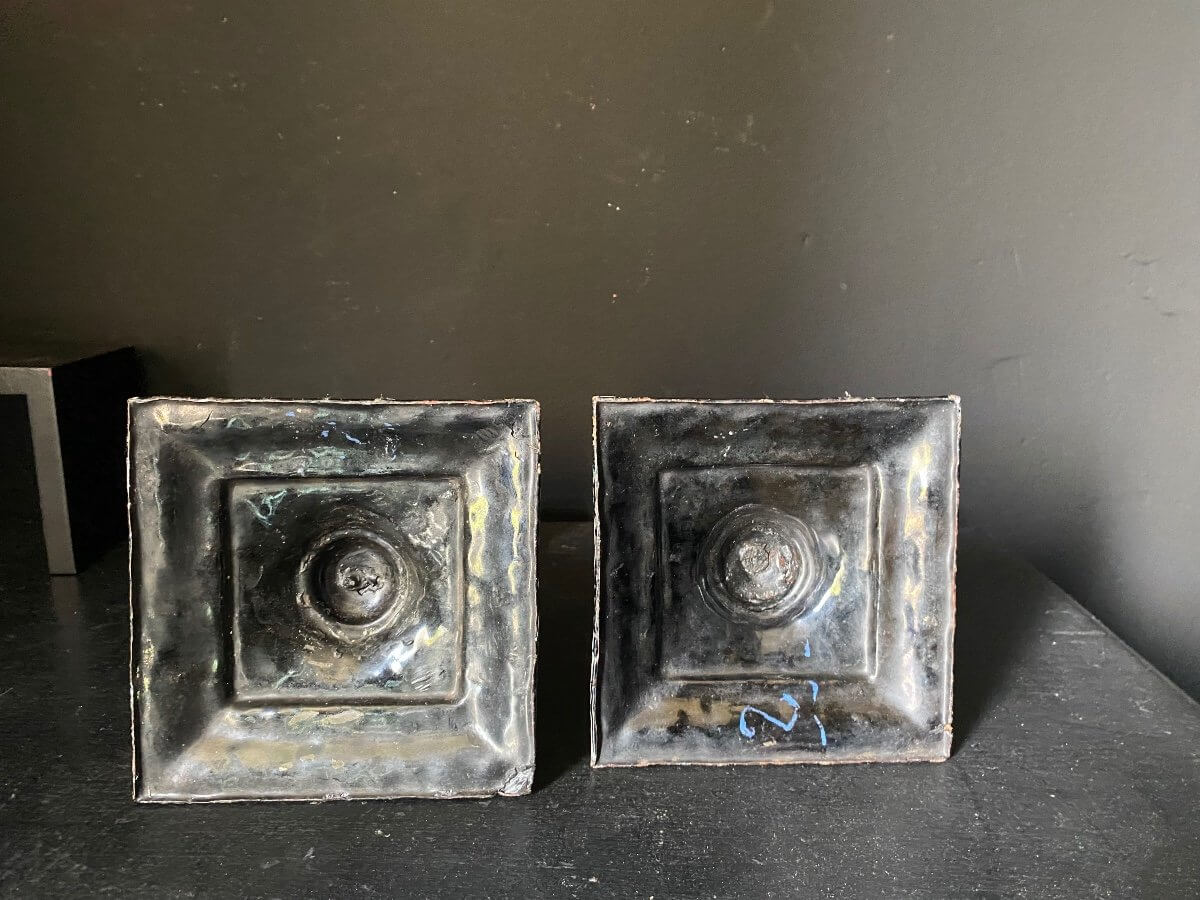 Paire De Bougeoirs En émaux Sur Cuivre [objet #2104]