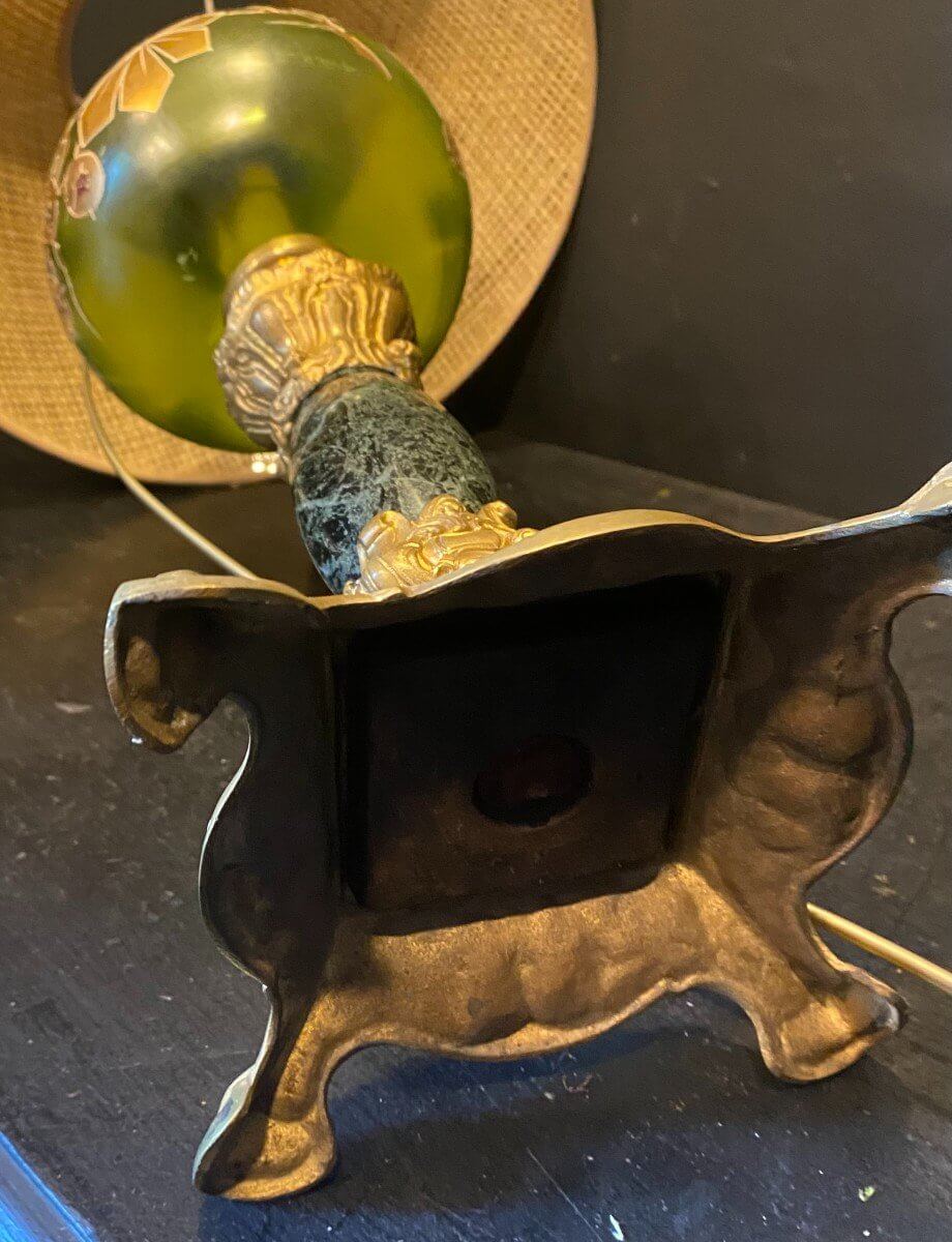 Lampe Art Nouveau à pétrole montée en lampe dimension du pied : 16,5 cm x 16,5 cm Hauteur : 47 cm, 63,5 cm avec l'abat jour