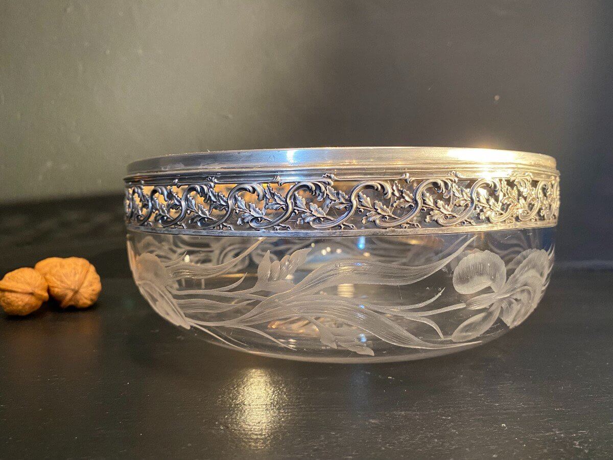 Saladier Art Nouveau En Cristal Et Argent [objet #2880]