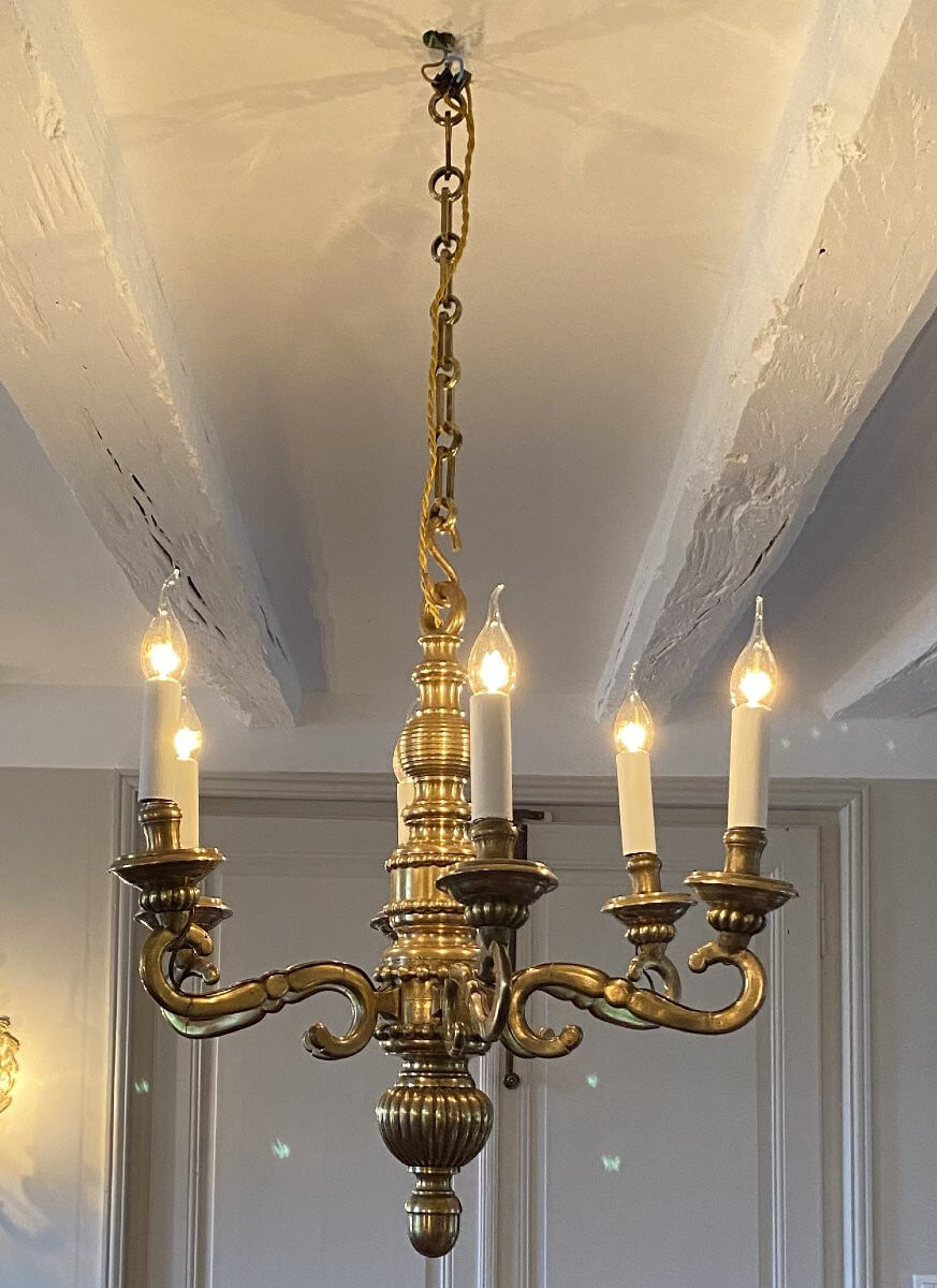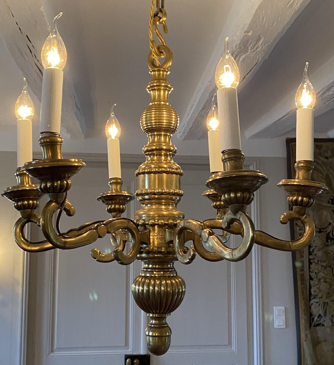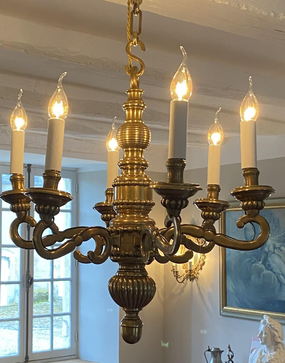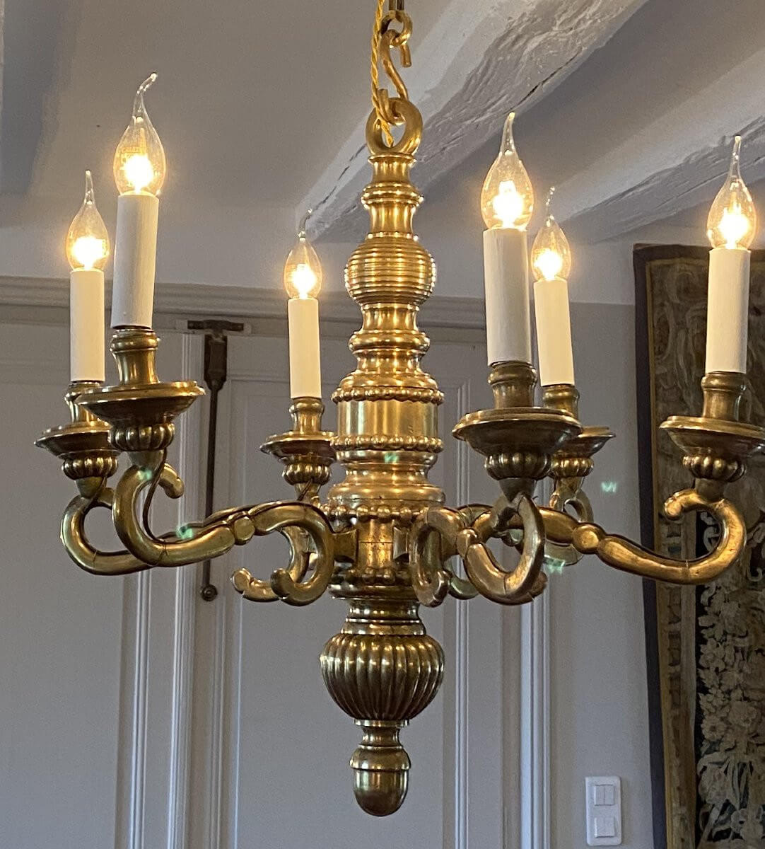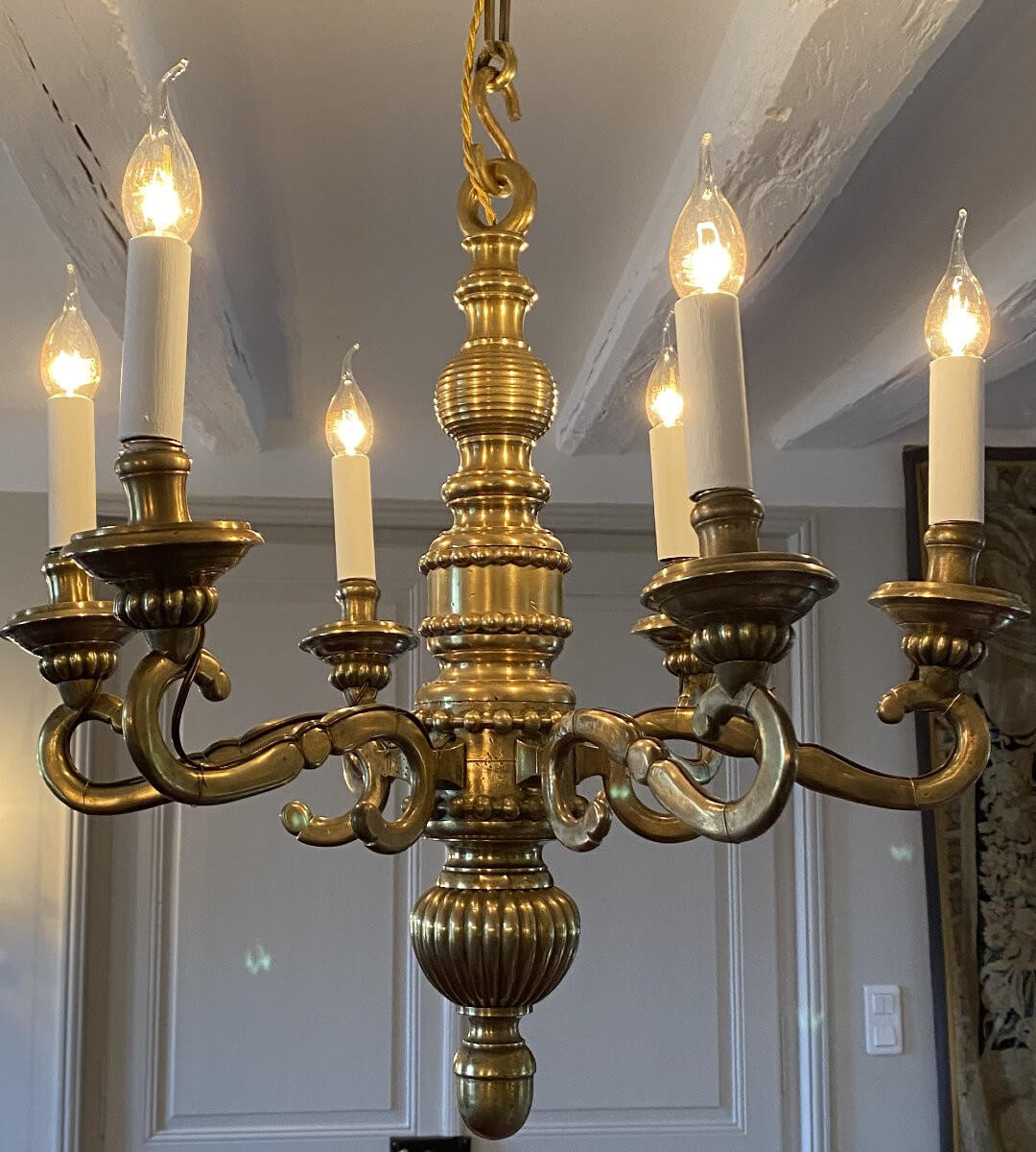lustre à 6 bras de lumière en bronze [objet #3325]