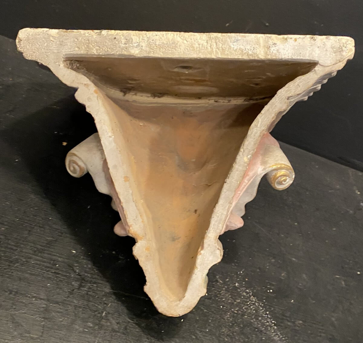 Console murale en terre cuite polychrome et plâtre pour le dessus .25 cm x 21 cm pour une hauteur de 20 cm
