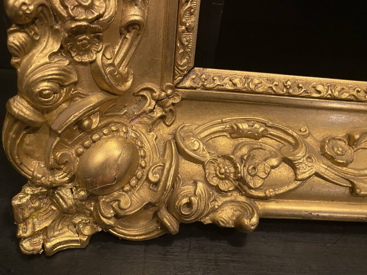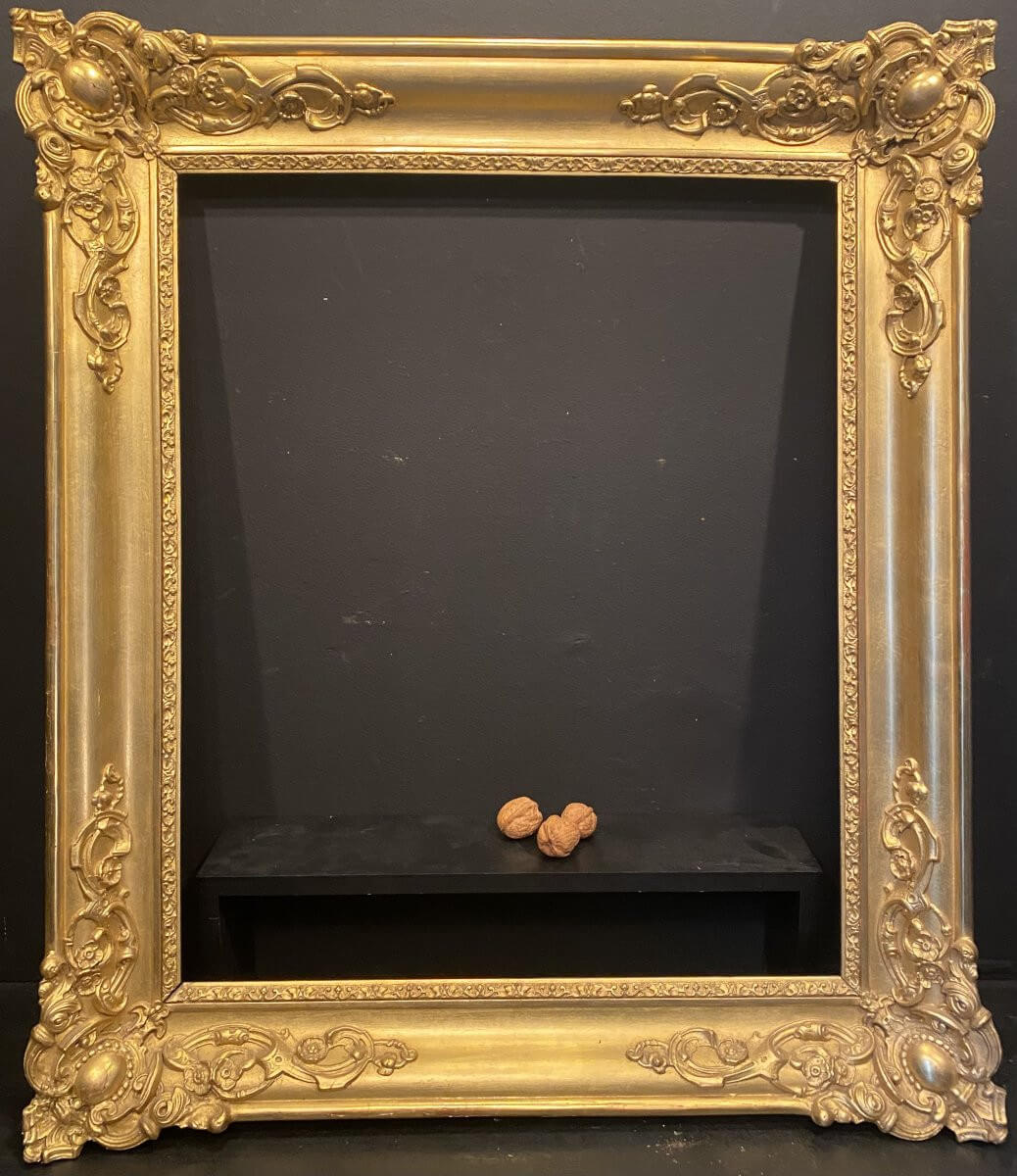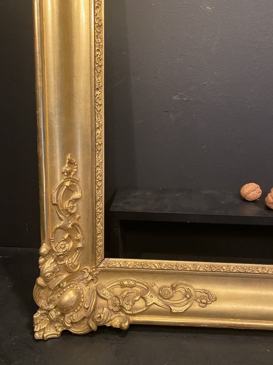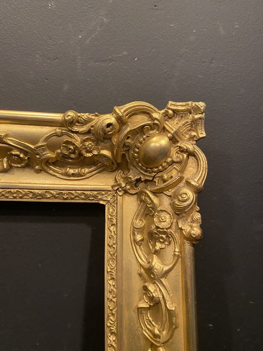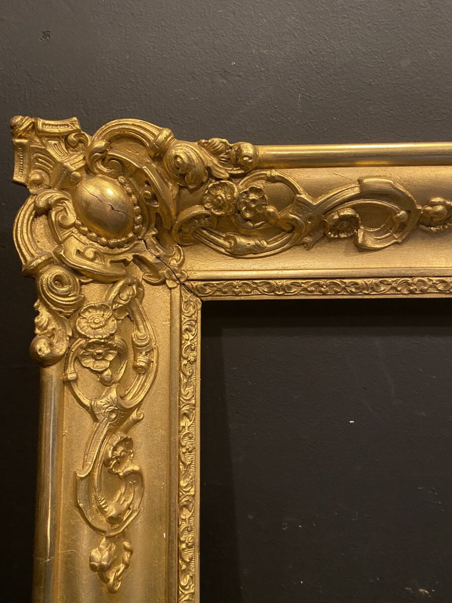 Cadre ancien datant du XIX° avec une très belle dorure .A noter : un angle a été recollé, voir photos .Dimensions extérieures : 72 cm x 62 cmDimensions intérieures : 56 cm x 46 cmfeuillure : 1,2 cm