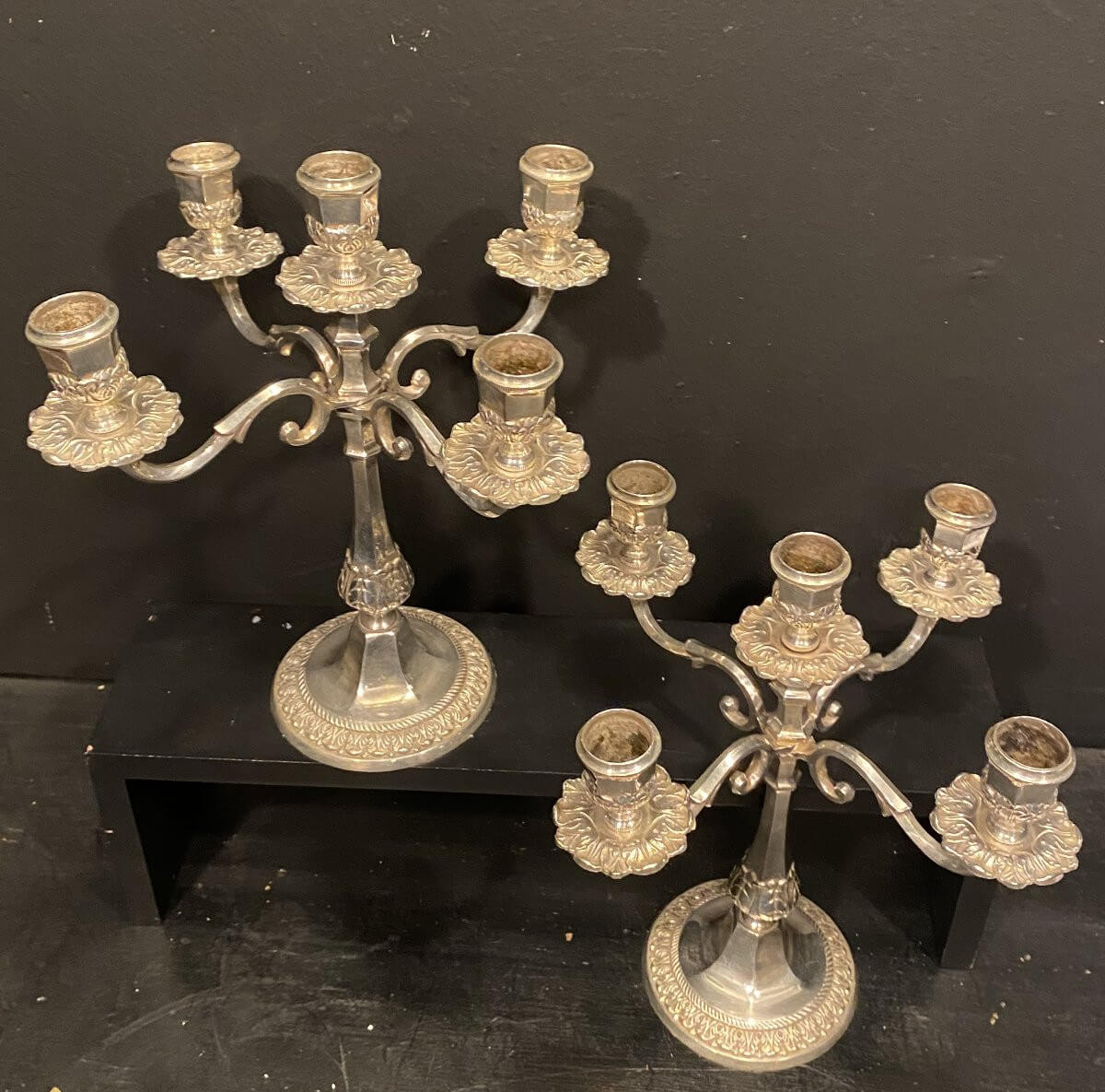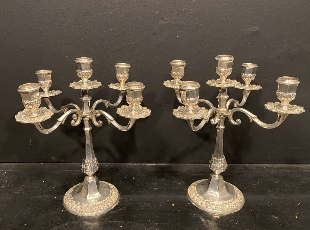 Paire de petits bougeoirs à 5 branches en métal argenté