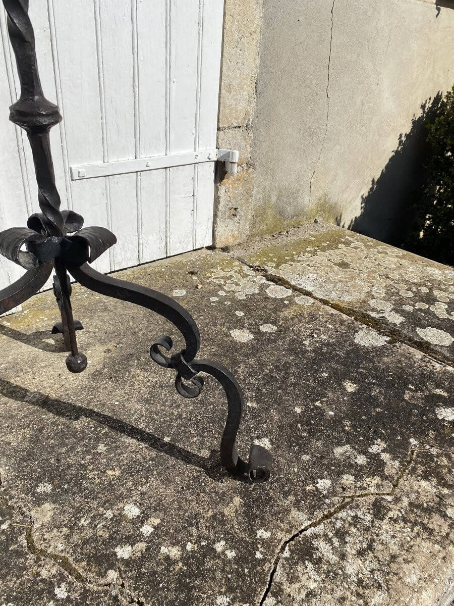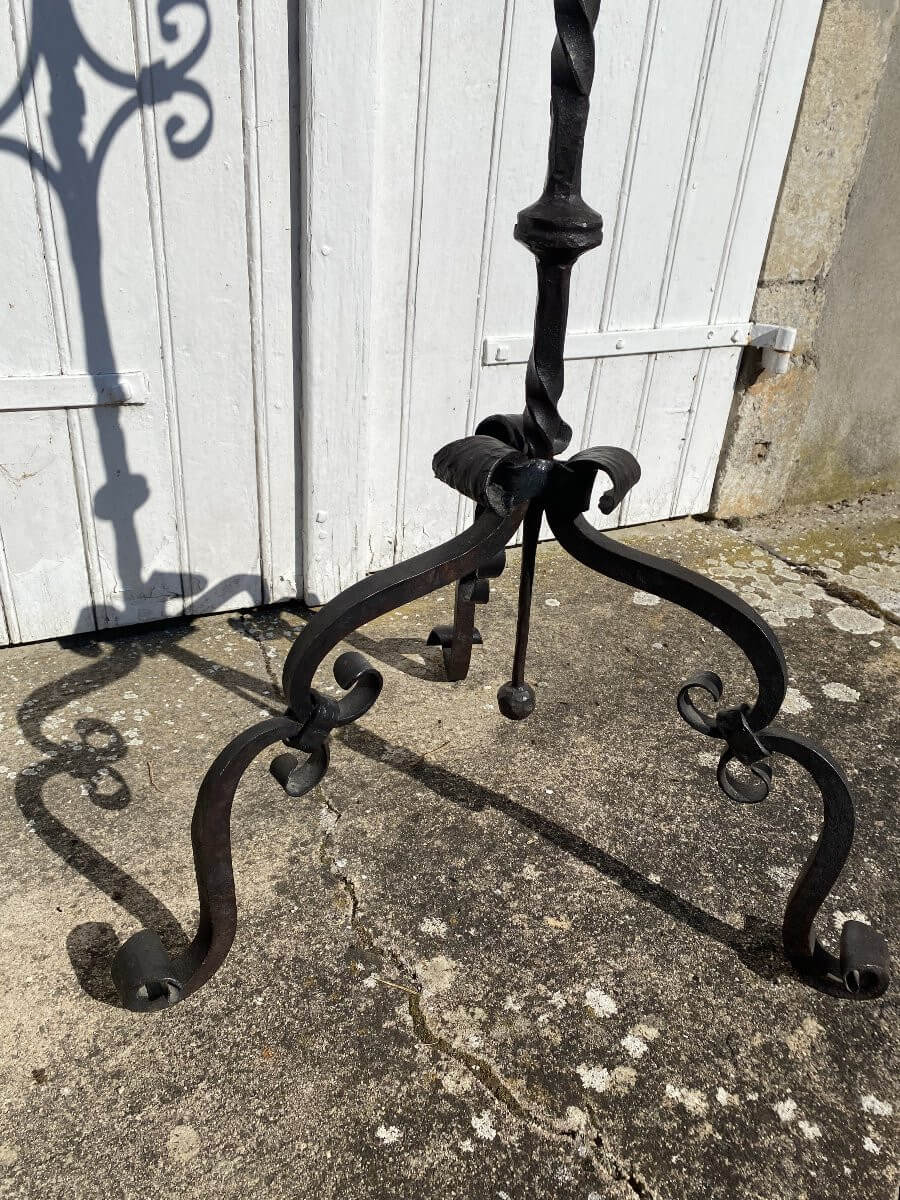 Lampadaire en fer forgé, signé MychajlowMoncel les lunéville .Vendu sans abat jour.Diamètre du bas : 60 cmHauteur : 155 cm sans la bougie.