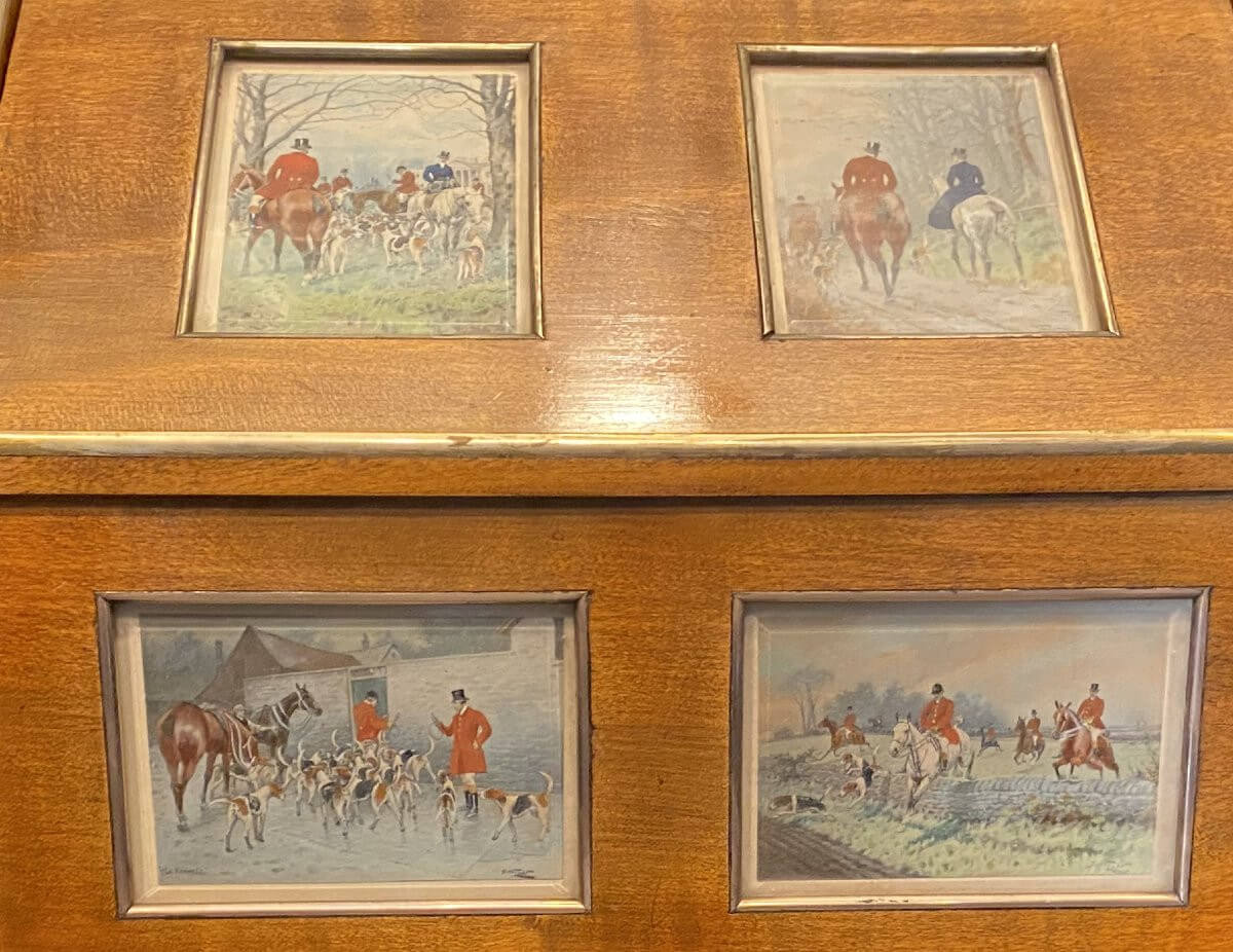 boite à courriers Napoléon III, aquarelles de chasse à courre [objet #3427]