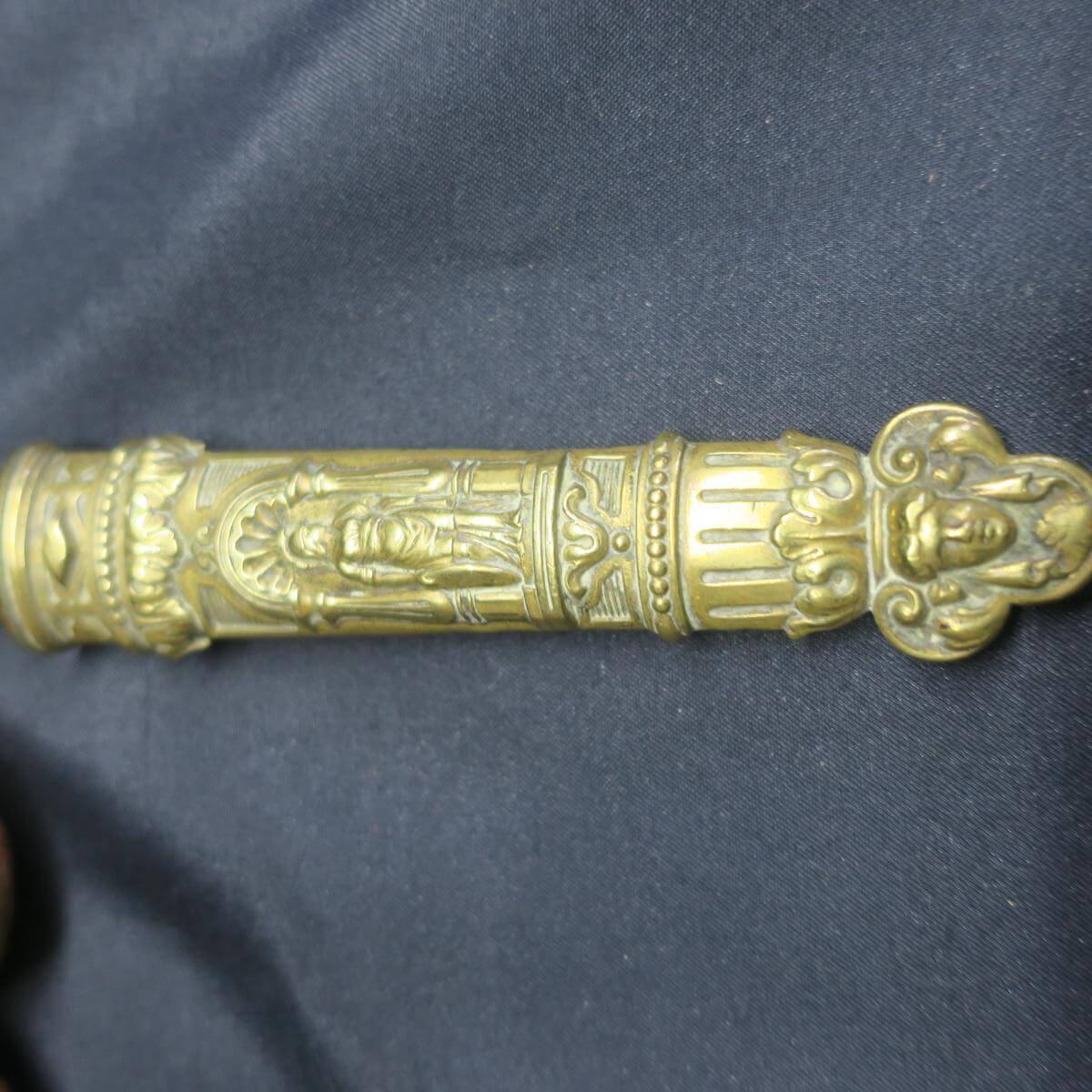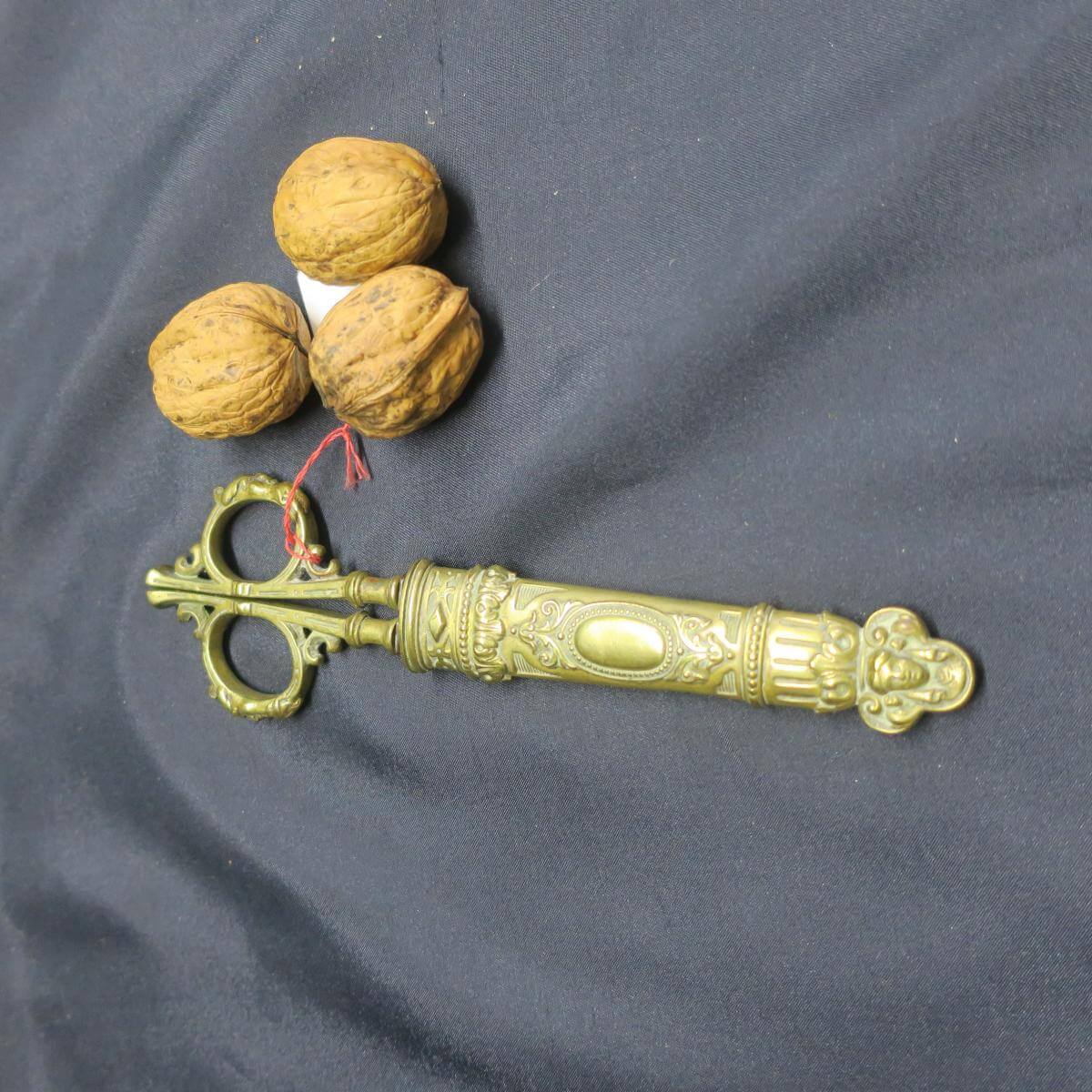 Paire de ciseaux d'époque Napoléon III dans leur fourreau en bronze à décor dans le gout de la renaissance . Lames en acier .
